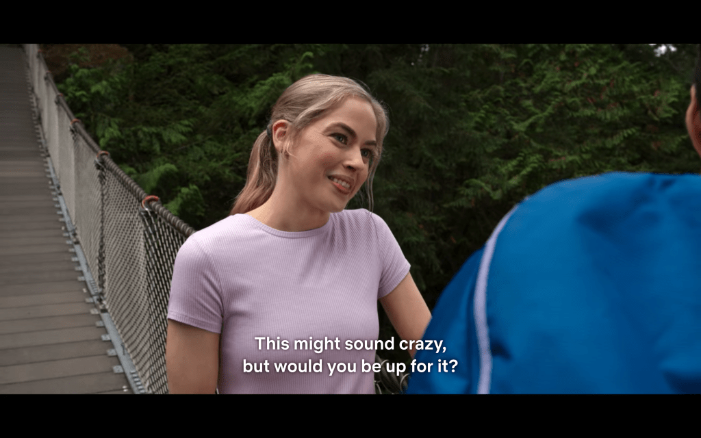 Denny takes Lizzie for a hike, and let’s take a minute to discuss how strange it is that he’s got a FULL PACK and she doesn’t even have a water bottle. What?! I think this is how the movie 127 Hours started…
