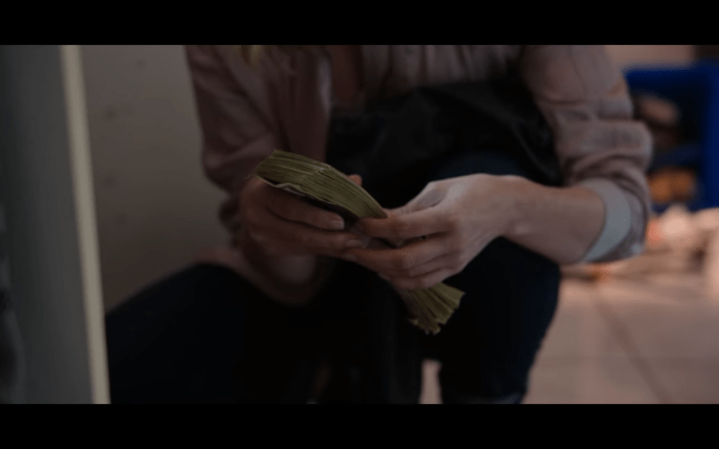 Brie looks for these bandages in the MOST likely of places. Because of course after you return to your home that’s been torn apart by the FBI and after being nearly murdered in prison, the first thing you do is put your post-op supplies underneath your kitchen sink.