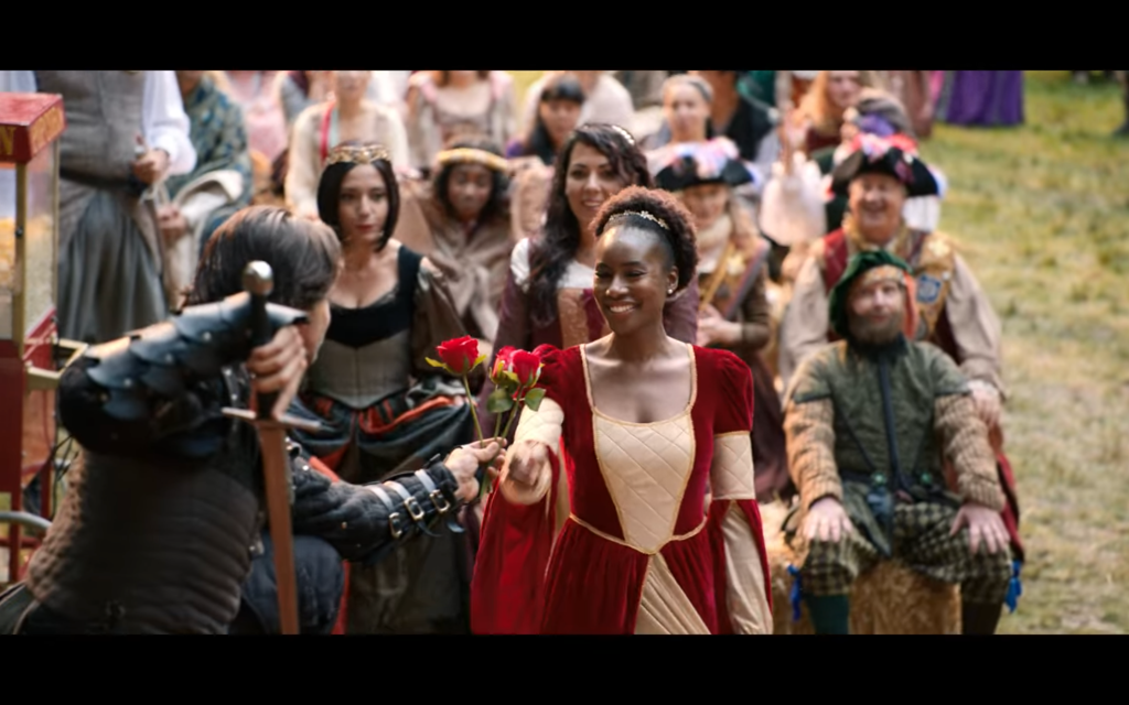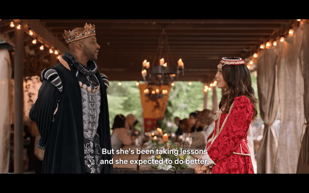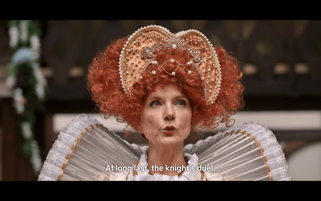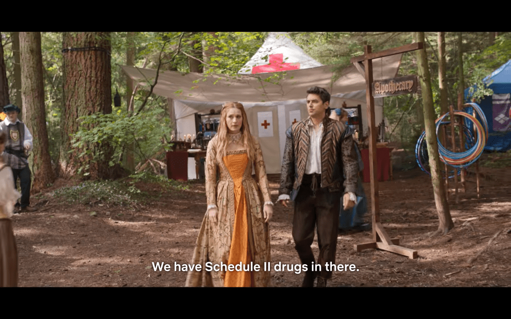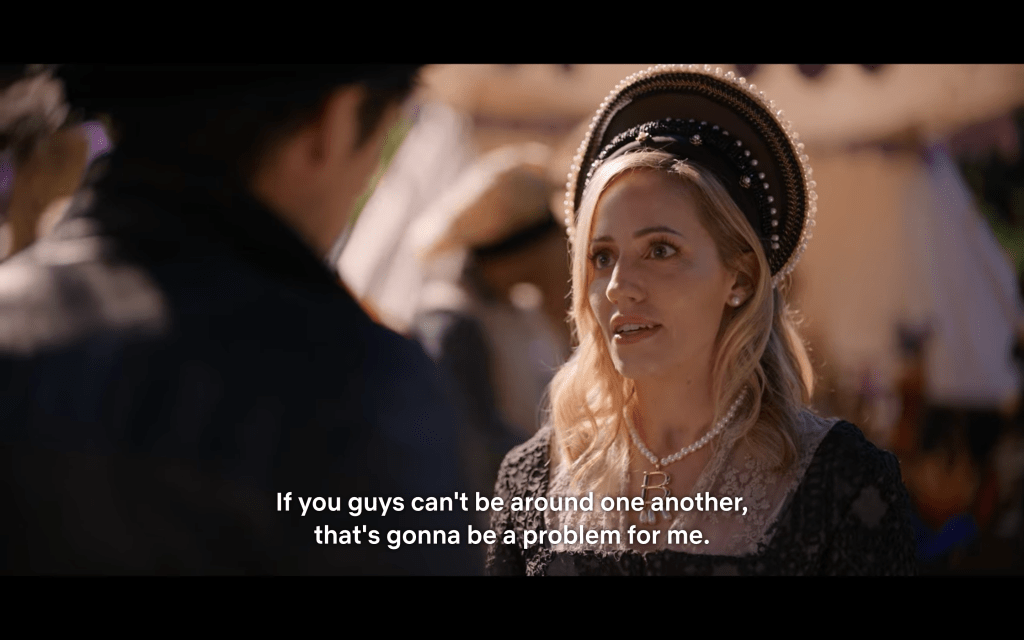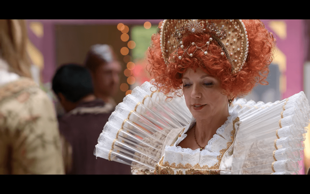 Okay, but really, what’s the point of this episode? Seems to me it’s just for funsies because almost nothing consequential happens. One thing is clear though: The production budget IS LIT! Everybody — even casual attendees (except special guest, Tim) — is in FULL PERIOD regalia.