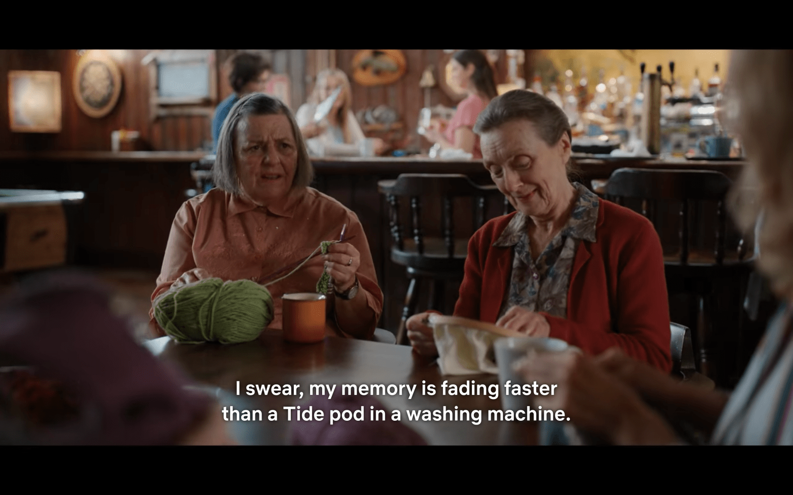 Sewing circle ladies: gossipin’ and chillin’.