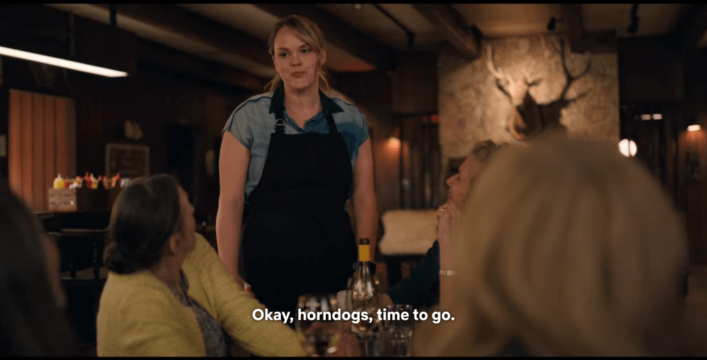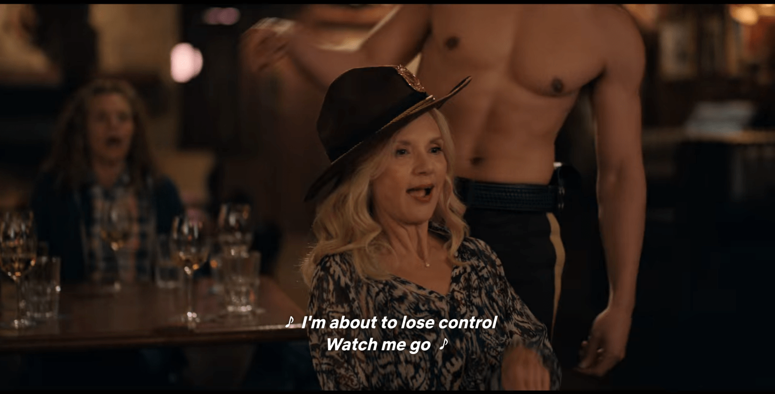 Anyway, because “drunk” Brie and “drunk” Kaia “forgot” to cancel, a “stripper” walks into the bar. And without any hesitation, the sewing circle volunteers to accept this incredible performance.