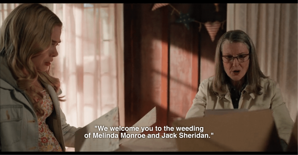 That’s right. This wedding is in [checks watch] approximately 30 hours and Mel has finally, FINALLY gotten the thing she truly wanted: Everett is walking her down the aisle!
